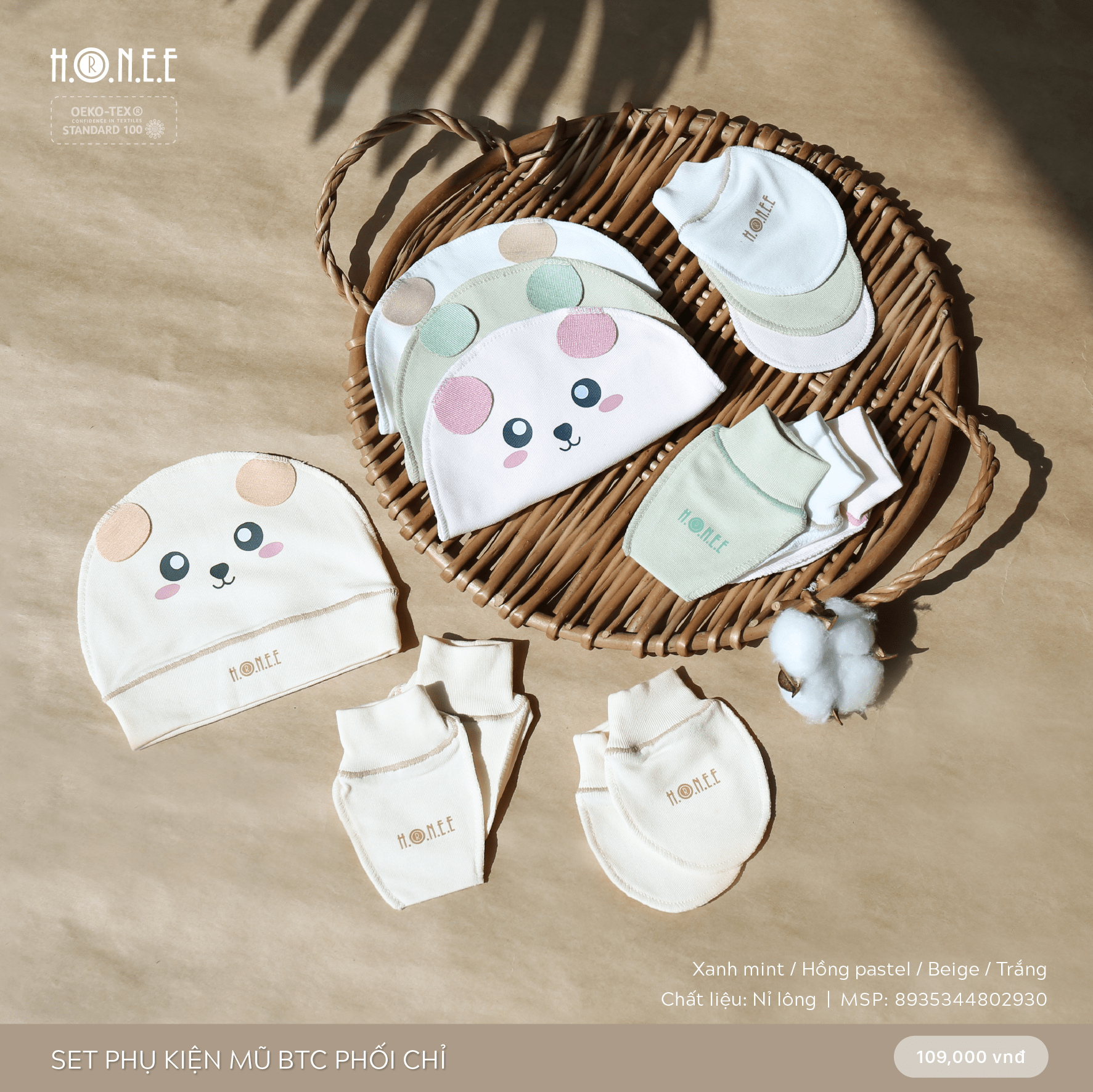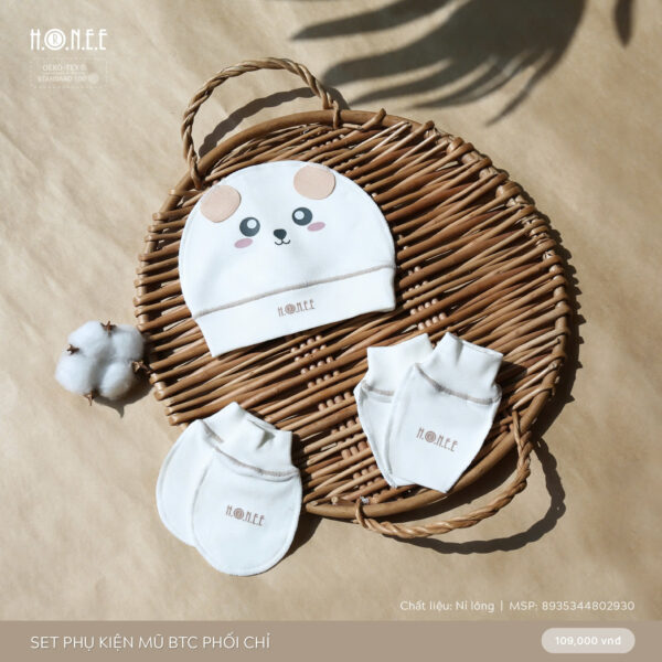 Chất liệu nỉ lông cao cấp, set phụ kiện mang lại cảm giác mềm mại, ấm áp và an toàn cho làn da nhạy cảm của bé. Chiếc mũ xinh xắn giúp giữ ấm phần đầu, trong khi bao tay và bao chân bảo vệ tay chân của bé khỏi gió lạnh. Với thiết kế đơn giản nhưng tinh tế, set phụ kiện không chỉ giữ ấm hiệu quả mà còn mang đến vẻ ngoài dễ thương, đáng yêu cho bé.