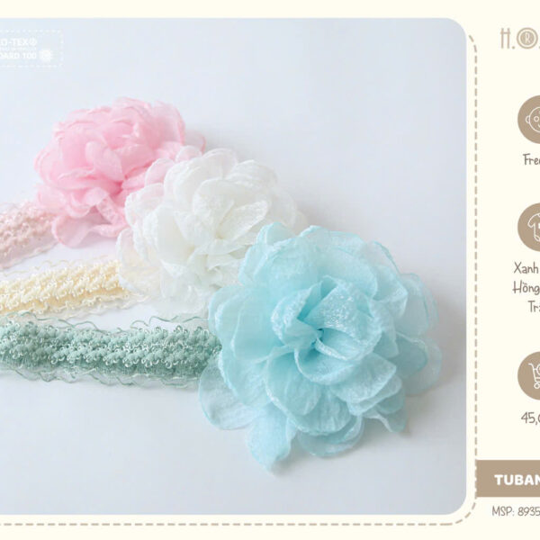 Turban Babie là phụ kiện đáng yêu dành cho bé với thiết kế bông hoa 3D bản to, giúp bé trông thật xinh xắn và nổi bật. Chất liệu mềm mại, co giãn tốt, ôm nhẹ nhàng mà không gây khó chịu, phù hợp cho bé đội cả ngày.