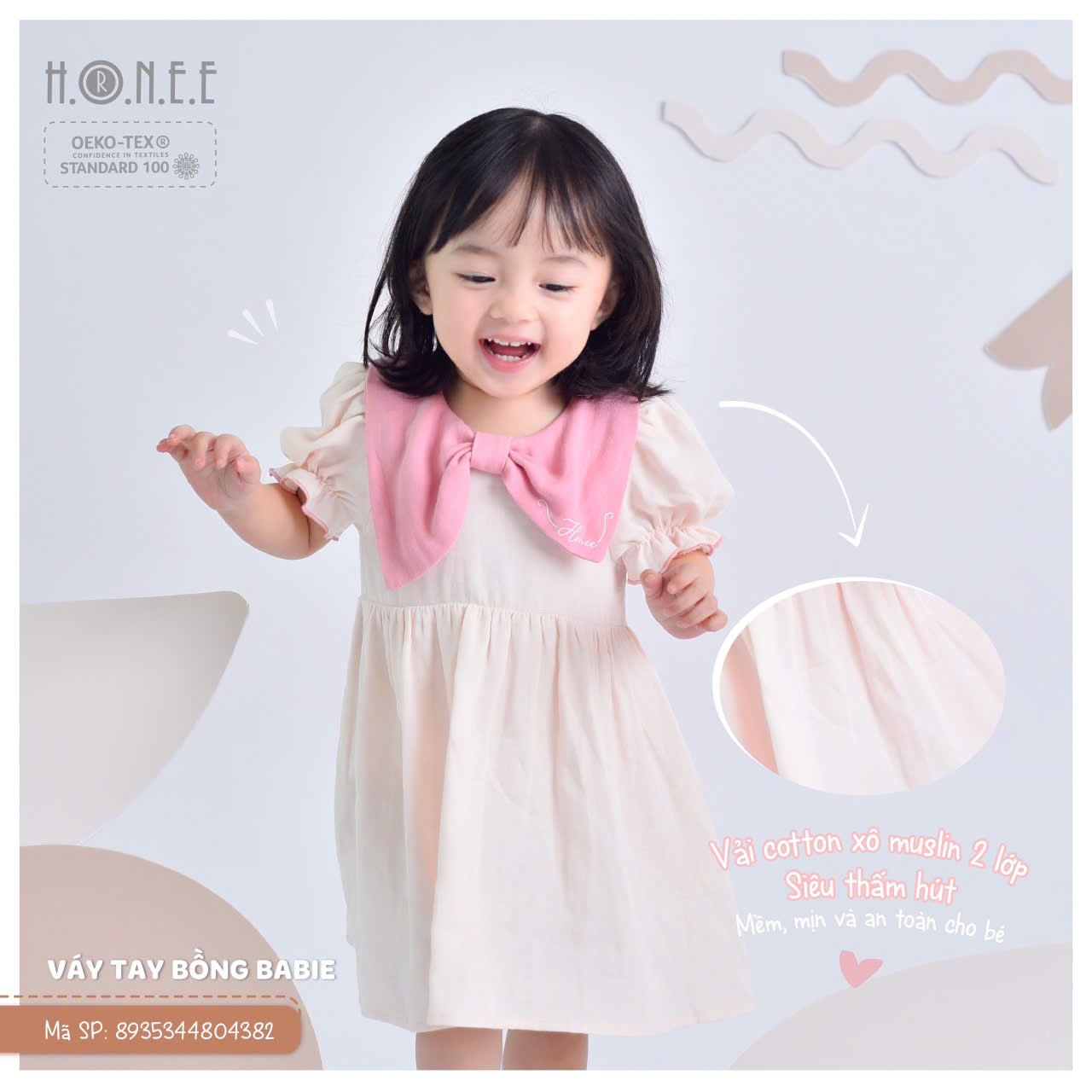Mùa hè đến cũng là lúc bé yêu cần những bộ trang phục thoáng mát, nhẹ nhàng, giúp bé thoải mái vui chơi mà vẫn thật xinh xắn, đáng yêu. Váy Tay Bồng Babie chính là lựa chọn hoàn hảo với chất liệu xô Muslin cao cấp, mềm mại, thoáng khí, giúp bé luôn cảm thấy dễ chịu ngay cả trong những ngày nắng nóng.