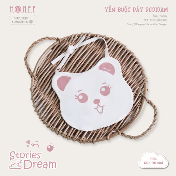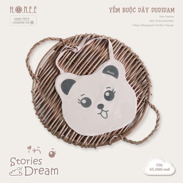 Yếm buộc dây Dudidam là sản phẩm độc đáo và tiện lợi, được thiết kế với hình in Dudidam siêu dễ thương, độc quyền của HRNEE.