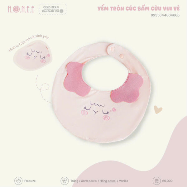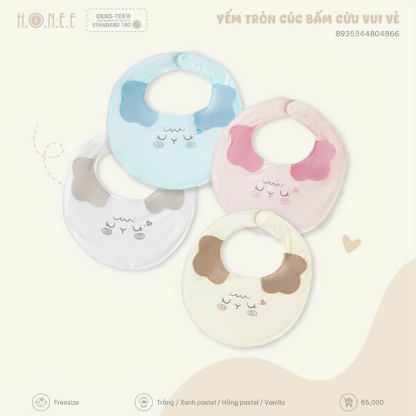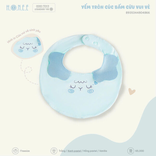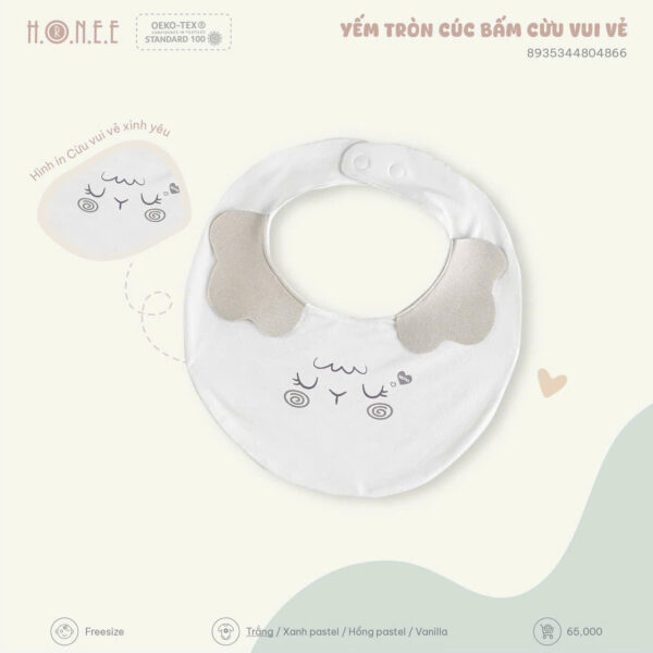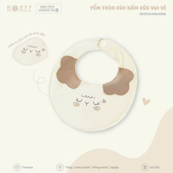 Chiếc yếm là vật dụng không thể thiếu trong hành trình ăn dặm và chăm sóc bé yêu. Với thiết kế tròn xinh cùng hình ảnh cừu đáng yêu, Yếm tròn cúc bấm Cừu Vui Vẻ đến từ HONEE là sự lựa chọn hoàn hảo giúp mẹ giữ bé luôn sạch sẽ, gọn gàng mỗi ngày.